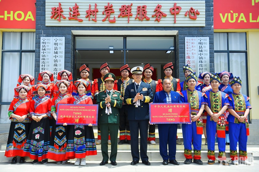 | Đại tướng Phan Văn Giang, Ủy viên Bộ Chính trị, Phó bí thư Quân ủy Trung ương, Bộ trưởng Bộ Quốc phòng Việt Nam cùng Bộ trưởng Bộ Quốc phòng Trung Quốc Đổng Quân tặng quà người dân trong khuôn khổ Giao lưu hữu nghị quốc phòng biên giới Việt Nam-Trung Quốc lần thứ 9. |