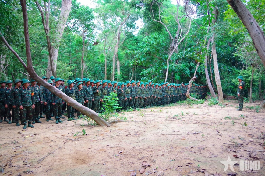 Trung sĩ, Tiểu đội trưởng Danh Tuyền, quê ở Gò Quao, An Giang, hiện công tác tại Trung đội 4, Đại đội 2, Tiểu đoàn 1, kể với tôi rằng ngoài nhiệm vụ huấn luyện, sẵn sàng chiến đấu phòng thủ đảo, cán bộ, chiến sĩ đơn vị còn có nhiệm vụ rất quan trọng đó là tuần tra, kiểm soát, canh gác, giữ rừng. Với họ, rừng là tài sản quý như máu thịt. Màu xanh của quân phục và những vệt mồ hôi vằn vện trên bộ dã chiến họ mang hằng ngày khi lăn lộn ở thao trường với các bài chiến thuật hay khi gác rừng đã hòa vào màu xanh của đảo.