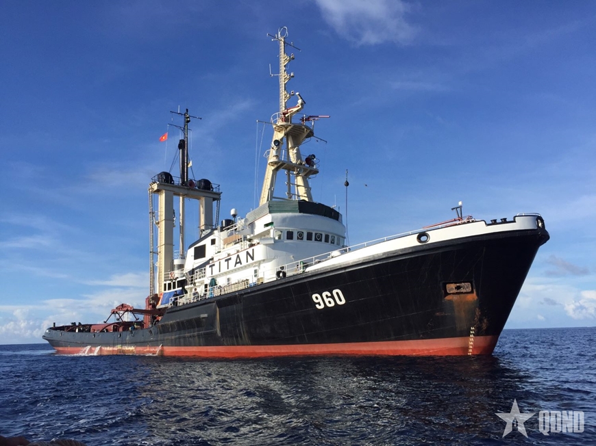 Chiều hôm trước, khi trò chuyện với Đại úy Nguyễn Duy Hoàng, Phó thuyền trưởng Tàu Titan 960 trong tiếng còi tàu vang mặt sông, tôi bất ngờ khi anh gọi con tàu thân yêu của mình là “cựu hoa hậu biển”. Anh Hoàng cho biết, Titan 960 là tàu cứu hộ do Cộng hòa liên bang Đức chế tạo và được Lữ đoàn đưa vào hoạt động từ năm 1992, tức là từ khi anh Hoàng và nhiều cán bộ, thuyền viên trên tàu còn chưa chào đời. Tính đến nay, tàu đã có thâm niên hoạt động liên tục trên vùng biển Việt Nam tới gần 35 năm. Và đó cũng là thời gian mà Tàu 960 gần như không bao giờ ngủ, trừ khi đi đốc. Thời còn "xuân sắc", tức là trước khi các Tàu 571 hoặc CSB 8001 ra đời nhờ sự hợp tác chặt chẽ với Tập đoàn đóng tàu Damen của Hà Lan thì Tàu 960 luôn là một trong những phương tiện chủ lực đưa đón các đoàn cán bộ của cơ quan Đảng, Nhà nước, tổ chức chính trị-xã hội ra công tác Trường Sa và vùng biển thềm lục địa phía Nam. Sau bao nhiêu năm không ngủ, Tàu 960 được chuyển sang nhiệm vụ trực dài ngày tại các vùng biển.
