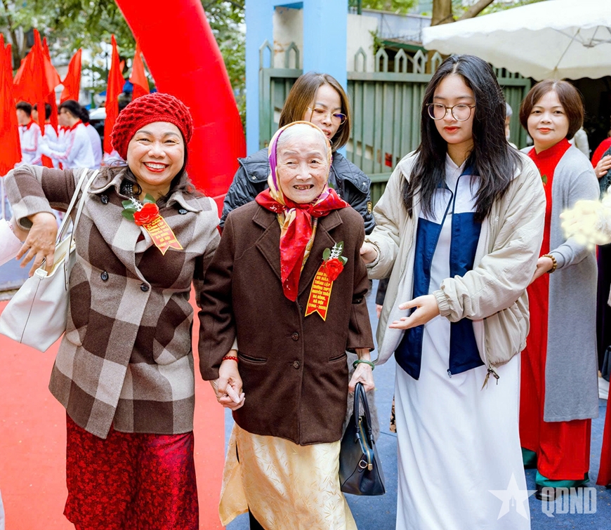 Dòng người nối tiếp nhau bước vào sân trường trong vòng tay chào đón của các học sinh. Biết bao thế hệ thầy và trò gặp lại nhau sau nhiều năm, có những người lưng đã còng, tóc đã bạc trắng, chầm chậm bước dưới sân trường xưa, rồi ngắm lại từng ô cửa sổ, lớp học, bảng đen, phấn trắng... Những cái bắt tay thật chặt, những cái ôm siết chặt ngày gặp lại như khiến cái se lạnh đầu đông dường như tan biến.