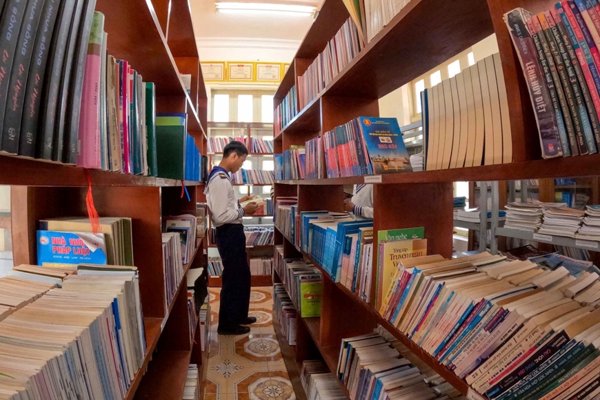 | Sách là món ăn tinh thần không thể thiếu trong đời sống bộ đội. Ảnh: VÕ VIỆT |