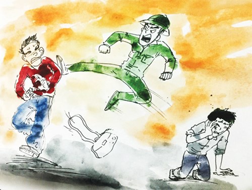 - “Nâu nâu”… à, có… có đấy. Hôm đang đứng chờ bắt xe buýt để lên trường thì tôi thấy hai thanh niên mặt bặm trợn, tay chân loang lổ hình xăm, giật túi xách của phụ nữ trạc tuổi ngoài bốn mươi mà không ai dám làm gì. Lúc đó, tôi vội nhờ một cô gái trông hộ chiếc ba lô rồi nhanh chóng chặn xe hai tên cướp. Tên ngồi sau xe bị tôi tung cú đấm vào mặt, ngã dúi dụi xuống mặt đường. Tên cầm lái cũng ăn cú song phi như trời giáng. Thấy tôi hạ gục hai tên cướp trong chớp nhoáng, trả lại chiếc túi xách cho người bị hại, những người có mặt hôm đó vô cùng cảm kích.