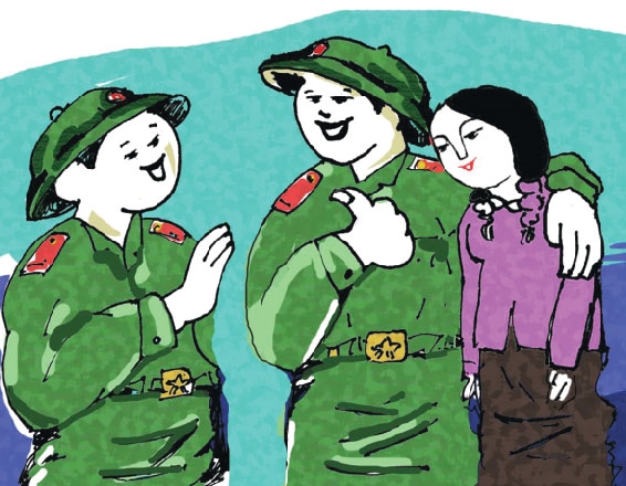 Rồi đơn vị chúng tôi hành quân dã ngoại giúp dân làng Đông làm đường nông thôn mới và thu hoạch mùa màng. Tôi và Thảo Đen cùng ở trong nhà bác Võ Vân. Thấy tôi siêng năng, lại “phòng không gối chiếc”, ông bà hay thầm thì với nhau chuyện gì đó. Thảo Đen ghé tai tôi: