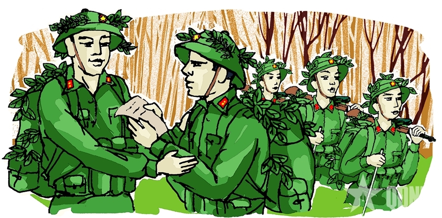 Ngày đi B cũng đến. Trước giờ xuất phát, anh em tôi ngồi cạnh nhau, động viên nhau hành quân đến đích. Chiến nhớ nhà, nhớ bố mẹ, nhớ các em. Tôi bảo Chiến: “Mấy năm hết chiến tranh, anh em mình sẽ gặp lại”. Chiến lặng lẽ nhìn cánh đồng lúa mới cấy của làng Bùi, nơi chúng tôi gắn bó những ngày huấn luyện.
