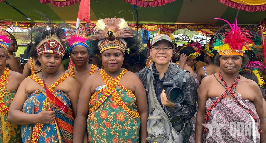 | Tác giả cùng thổ dân Indonesia trong hành trình tìm chim. |
