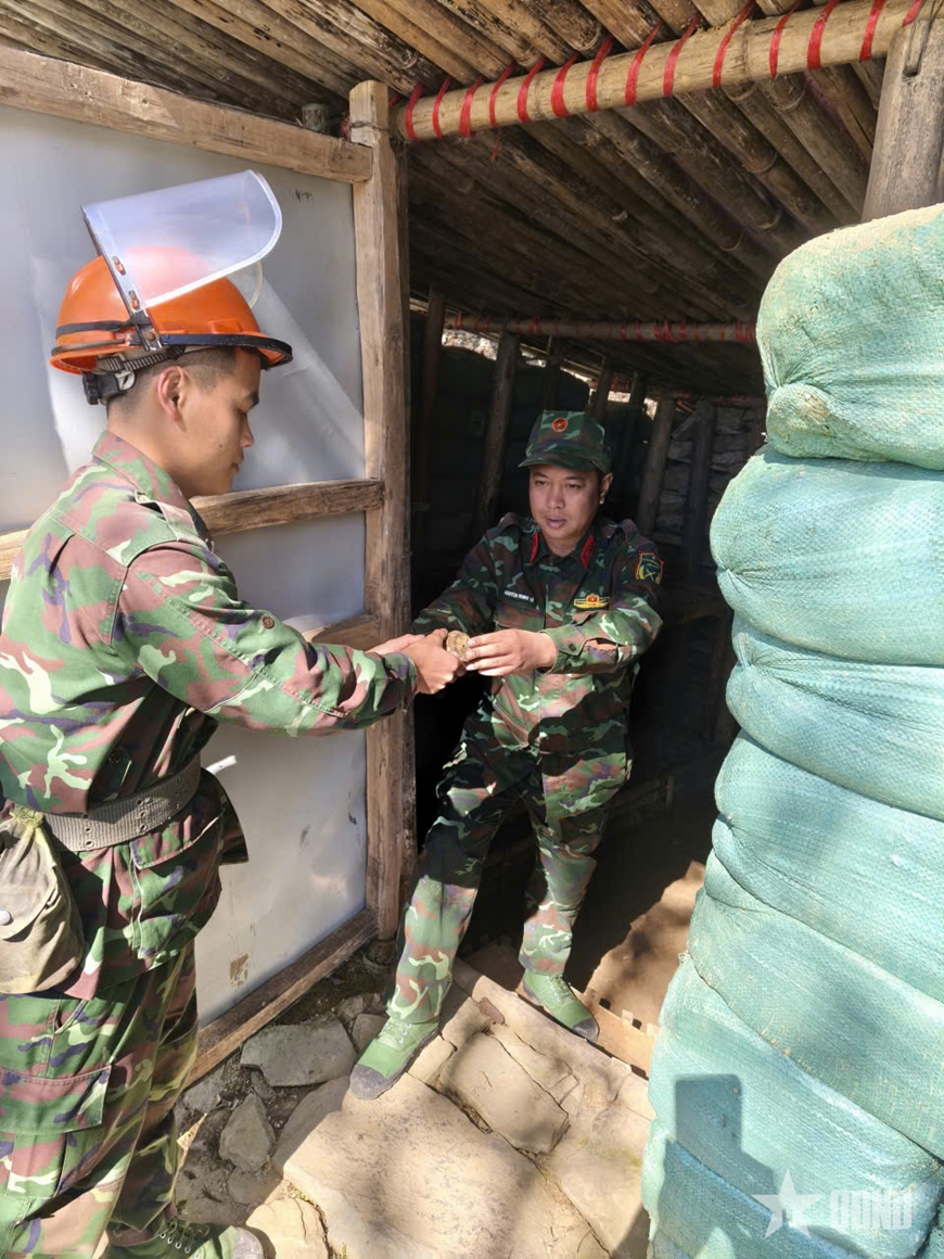 Âm thanh kéo dài bất thường vang lên: “Bíp... bíp... bíp...”. Chiến sĩ Lù Văn Thương lập tức giơ tay ra hiệu. Dưới lớp đất nâu bị sạt mỏng, một mảng kim loại đen xỉn lộ ra mìn sát thương còn sót lại từ chiến tranh.