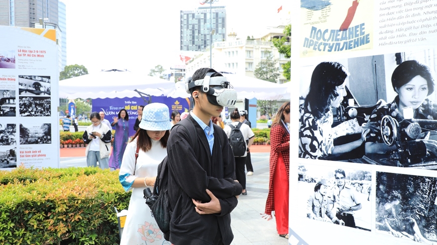 | Du khách trải nghiệm thực tế ảo các thước phim. |