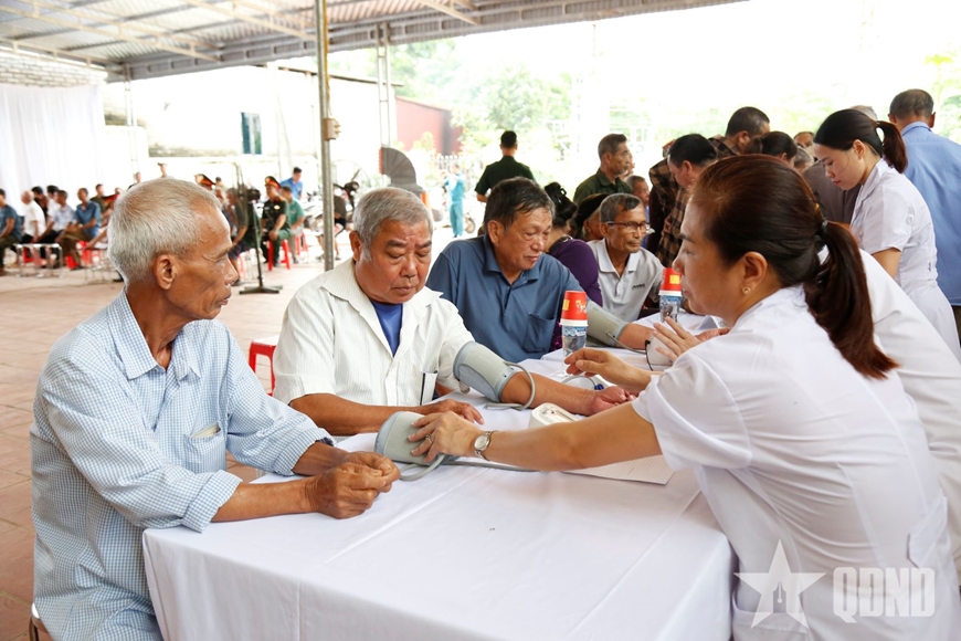 | Thầy thuốc Bệnh viện Quân y 103, Học viện Quân y khám, chữa bệnh, cấp thuốc miễn phí cho bà con ở Bắc Ninh. Ảnh: TUẤN DŨNG |