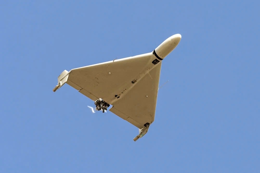 | Một chiếc UAV Shahed-136 của Iran xuất hiện trên bầu trời tỉnh Kermanshah. Ảnh: Getty Images |