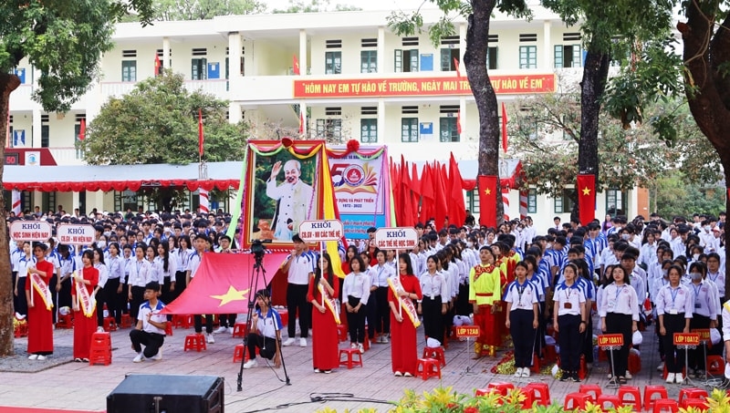 | Quang cảnh lễ kỷ niệm 50 năm thành lập Trường THPT Mỹ Đức B/ Ảnh minh họa/hanoimoi.vn |