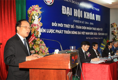 Trước đó, tại Đại hội VFF nhiệm kỳ VII, Bộ trưởng Bộ Văn hóa, Thể thao và Du lịch Hoàng Tuấn Anh cũng đã có bài phát biểu chỉ đạo đại hội. Bộ trưởng Hoàng Tuấn Anh khẳng định: “Chiến lược phát triển Bóng đá Việt Nam đến năm 2020, định hướng đến năm 2030 đã được Thủ tướng Chính phủ phê duyệt là một văn bản rất quan trọng, mở ra nhiều thuận lợi để bóng đá phát triển. Trong điều kiện kinh tế suy thoái, VFF vẫn duy trì được hoạt động và tiếp tục có những tìm tòi, thử nghiệm mở rộng tổ chức, bộ máy, phát triển thêm các tổ chức thành viên, tăng cường nhân sự cho hoạt động của liên đoàn. Công tác đối ngoại của Liên đoàn Bóng đá Việt Nam được mở rộng. VFF đã nâng cao được uy tín trong các hoạt động bóng đá quốc tế; đóng vai trò là tổ chức thành viên tích cực của FIFA, AFC, AFF”.