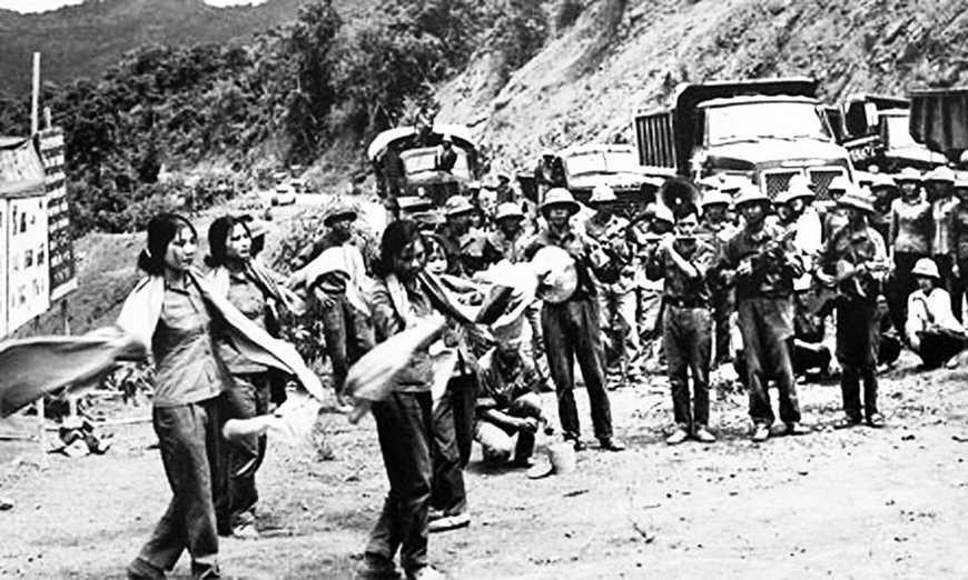 Văn công biểu diễn trên Đường Trường Sơn. Ảnh tư liệu