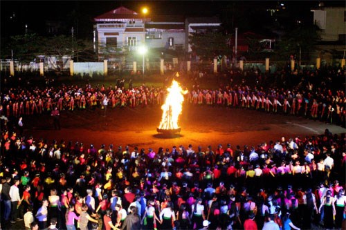 Để tỏ lòng mến khách, và cũng là để “khoe” với khách miền xuôi nét văn hóa đặc sắc của dân tộc mình, chủ nhà cho đốt đống lửa lớn trước sân nhà sàn, rồi gọi các em thanh niên trong bản đến biểu diễn múa xòe, cho khách quý được thưởng thức và hòa vào cuộc vui. Các cô gái Thái xúng xính trong bộ áo cỏm, váy nhung, nắm tay nhau thành vòng tròn, chuyển động dần theo vòng quay quanh đống lửa, trong lời ca tha thiết: Đêm Mường Lò, trăng đang lên dần, xòe đi anh, tay cầm tay múa xòe cùng em. Đêm Mường Lò, chiêng trống nhịp nhàng, rừng núi âm vang, tay cầm tay múa xòe cùng em...