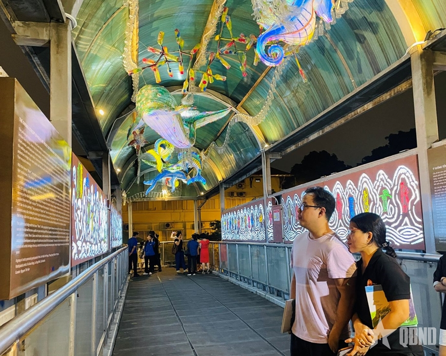 | Cầu vượt đi bộ Trần Nhật Duật (Hoàn Kiếm, Hà Nội) trở thành không gian nghệ thuật độc đáo nhờ sự sáng tạo của các họa sĩ. Ảnh: ĐẶNG THỦY |