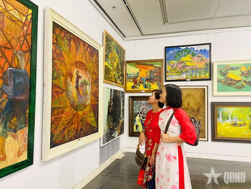 | Công chúng tham quan Triển lãm Mỹ thuật Thủ đô 2025. Ảnh: ĐẶNG THỦY |
