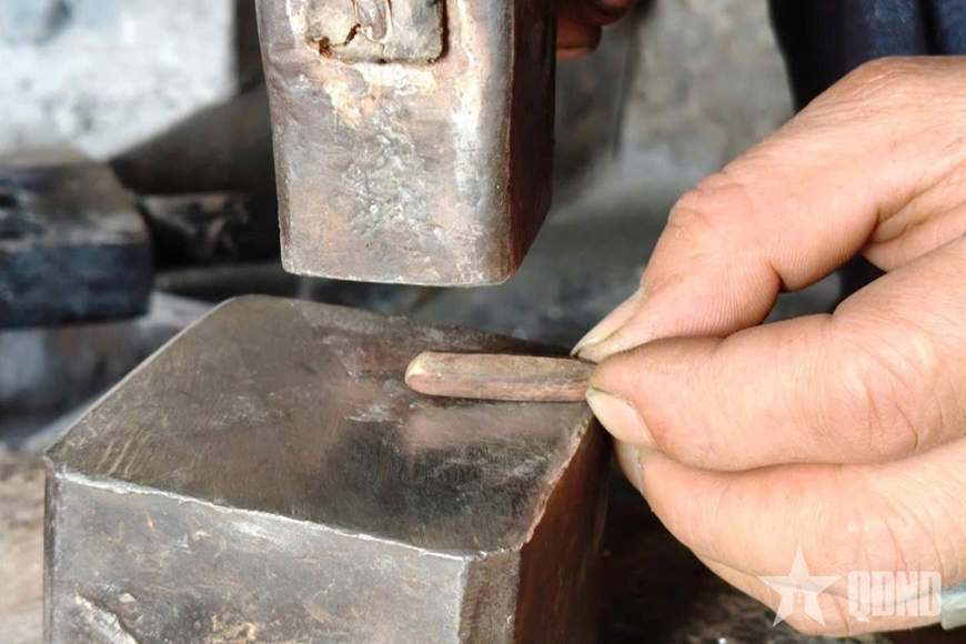 | Búa đập thanh bạc trên đe. |