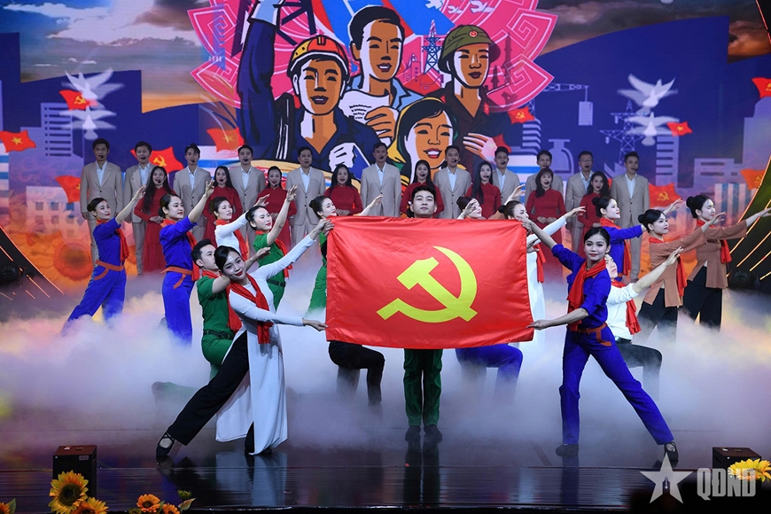Chương trình nghệ thuật tại Lễ phát động Cuộc thi báo chí viết về Đảng quang vinh, Bác Hồ vĩ đại với chủ đề “Vững bước dưới cờ Đảng". Ảnh: PHÚ SƠN