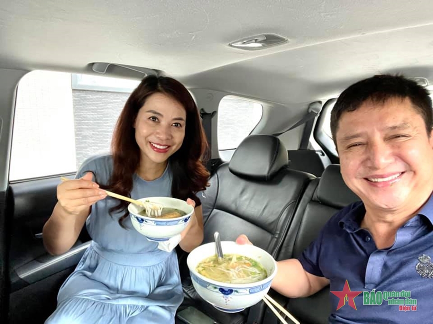 Nghệ sĩ ưu tú Chí Trung thưởng thức phở trên ô tô cùng bạn với dòng trạng thái "Tuyệt vời mùa thu" trên Facebook cá nhân. Ảnh do nhân vật cung cấp |