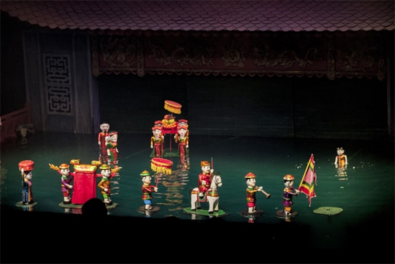 Chính ở lõi trung tâm địa linh Thủ đô 1.009 tuổi, ngự một nhà hát mang tên kinh đô thuở đầu tiên. Nhà hát Múa rối (NHMR) Thăng Long vừa sinh nhật tuổi 50, nửa thế kỷ liên tục truyền tỏa được thông điệp của nghệ thuật rối nước hơn 1.000 năm của Việt Nam tới khắp toàn cầu. Tôi đặc biết ấn tượng về những chấm son khắp năm châu trên bản đồ thế giới đánh dấu những nơi nhà hát đã đến biểu diễn. Buổi sinh nhật là ngày hội vui của các thế hệ nghệ sĩ đúng kỷ niệm Hà Nội 65 năm Ngày giải phóng. Sân khấu nước lợp kín lại, tiệc chiêu đãi quan khách và nghệ sĩ các nhà hát đến chung vui là các trích đoạn rối cạn, thể hiện khả năng đa dạng của diễn viên nơi này. Bên cạnh vở “Tấm Cám” truyền thống, lại có sự cập nhật mới lạ, tiết tấu sôi động trẻ trung của vũ điệu đường phố. Các con rối mặc thời thượng nhảy hiphop, tốp diễn viên điều khiển con rối cũng nhảy rất ăn khớp nhịp nhàng, gây ngỡ ngàng cho biết bao khán giả.