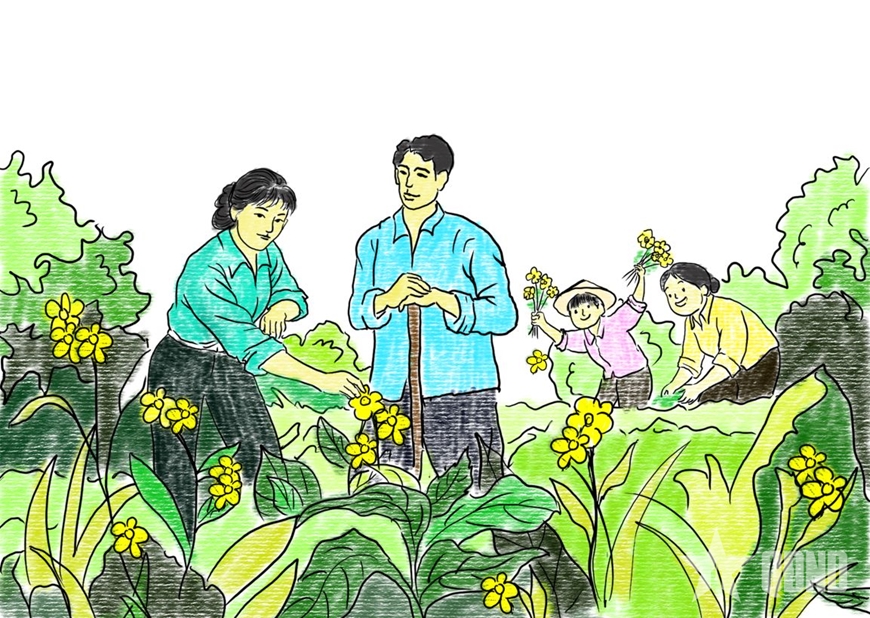 Trên những thửa ruộng trải dài ngút tầm mắt, bà con nông dân lom khom chăm sóc từng luống rau, vạt hoa. Đôi tay quen việc thoăn thoắt vun gốc, tỉa lá. Thấy Mai, vài người ngẩng lên, nụ cười tươi tắn trên gương mặt rám nắng.