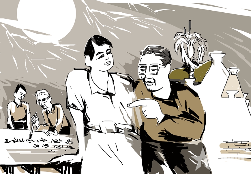 Tán cổ thụ trùm cả khoảng sân rộng, quanh năm sắc diệp lục cứ xanh vô tư, như tấm lòng của thầy Lượng. Hơn chục cô cậu lớp thư pháp, ngộ nghĩnh đố nhau về một tích cổ, rồi cả bọn cười như nắc nẻ. Thầy Lượng vừa pha ấm trà mới, hơi bốc nghi ngút, thơm đậm vị. Hương vị làm cả những chiếc lá cây, bầy chim lích chích nhảy nhót trên cành thấy sảng khoái. Thầy bất ngờ khi một chàng trai bước vào, cung kính, giọng như thể đã biết rõ thầy lắm. Chàng trai tên Kiên, đến từ một viện nghiên cứu công nghệ dược. Anh muốn xin học thư pháp. Sau khi rót nước mời khách, thầy từ tốn chỉ vào các học trò: