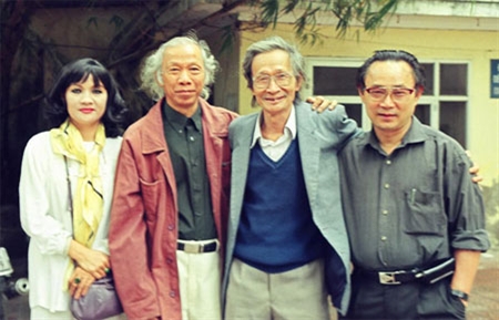 Từ phải qua trái: Nhà phê bình Ngô Thảo, nhà văn Nguyễn Xuân Khánh và vợ chồng nhà thơ Thu Bồn. Ảnh: Hải Lăng