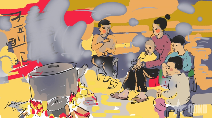 Lũ trẻ con chúng tôi chẳng thể rời mắt khỏi bếp, hớn hở đòi canh nồi bánh cùng mẹ. Tiếng cười nói trong bếp hòa lẫn với thanh âm lách tách của củi cháy, tiếng mưa rơi rả rích ngoài trời, gió bấc thốc hun hút từng ngóc ngách khiến thời gian như ngừng trôi. Nghe tiếng gà gáy, tôi giật mình thức dậy, thấy bóng mẹ chập chờn bên vách tre sẫm màu. Nhiều năm trôi qua, tôi chưa bao giờ thức trọn để canh nồi bánh chưng cùng mẹ nhưng hồi ức ấy vẫn trong lành, ấm áp như sợi khói lam chiều quấn quanh căn bếp quê hương.